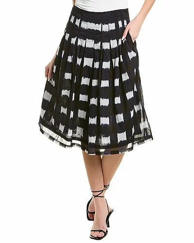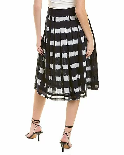 - Zelda Midi Skirt in ghana check white indigo with pleated design and two front pockets