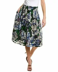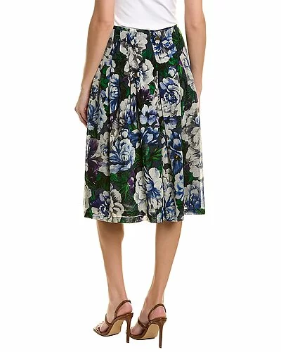 - Zelda Wool Skirt in midnight blue flower with pleated design and side seam pockets