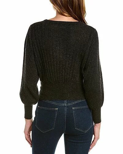 - Cropped Wool & Cashmere-Blend Sweater in grey with ribbed design and dolman sleeves
