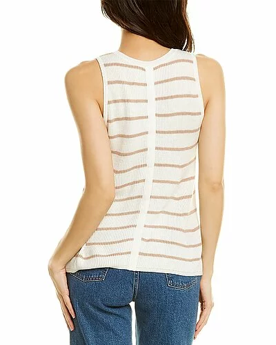 - Dawson Cashmere-Blend Tank in white & travertine with ribbed knit design