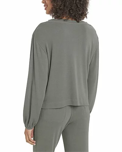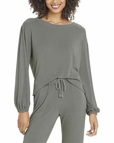 - Hazel Rib Pullover in soft vob with dropped-shoulder blouson sleeves