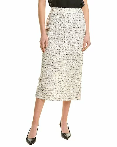 - Eyelash Knit Pencil Skirt in black & ecru multicolor with vented back hem