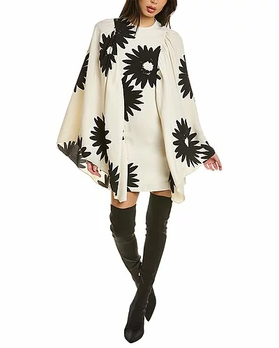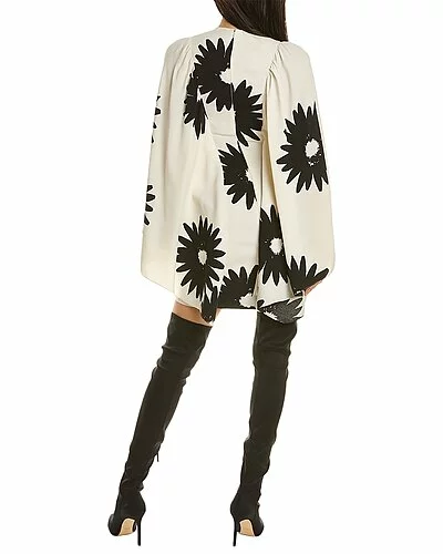 - Luciana Dress in white multicolor with shirred cape sleeves and dual side on-seam pockets
