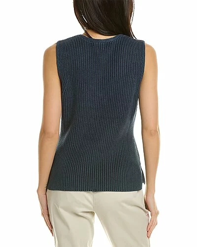 - Belle Haven Tank Sweater in dark sapphire with shaker rib design and slits at hem