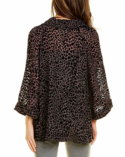 - Tropanimal Burnout Silk-Blend Top in black with cowl neck and 3/4-length sleeves