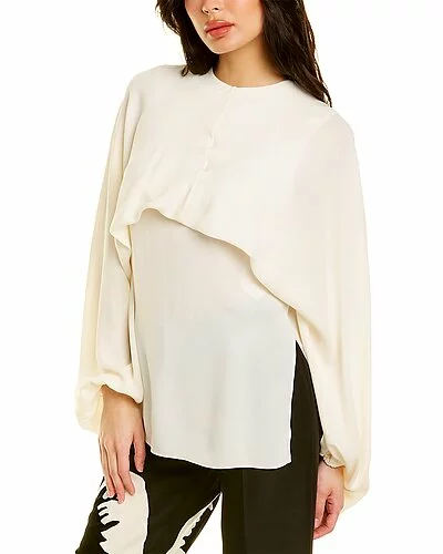 - Silk Blouse in avorio with blouson cape sleeves, and elasticized cuffs