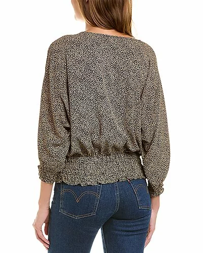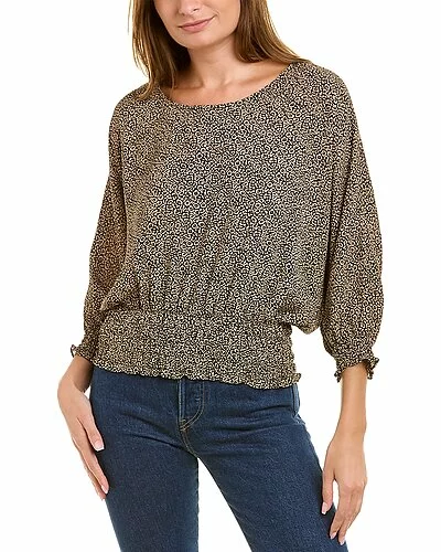 - Dolman Sleeve Top in cafe with scoop neck, blouson sleeves, and smocked trim
