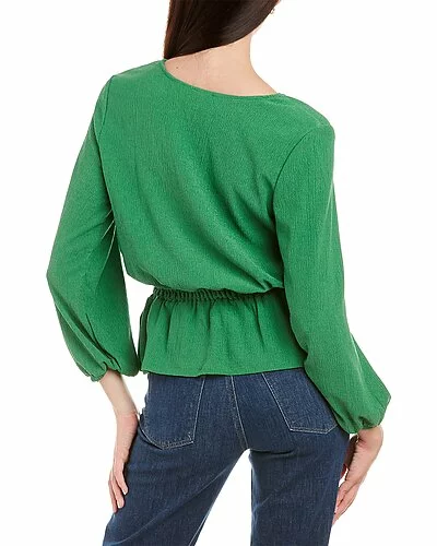 - Cross Front Knit Top in wise with textured design, surplice front, and smocked peplum hem