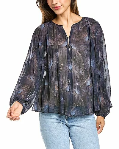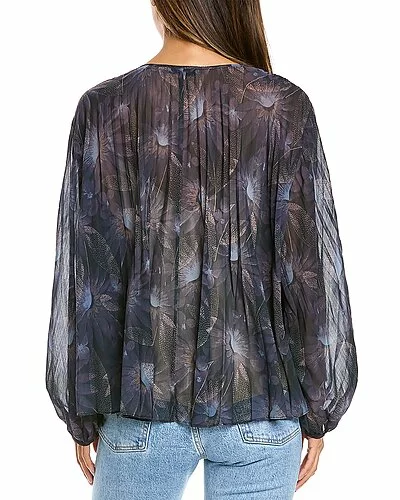 - Deco Floral Pleated Blouse in lazuli with dolman sleeves