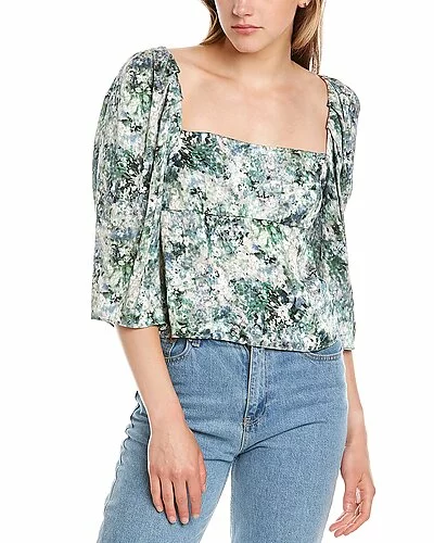 - Painted Floral Top in herb with square neck and pleated shoulders
