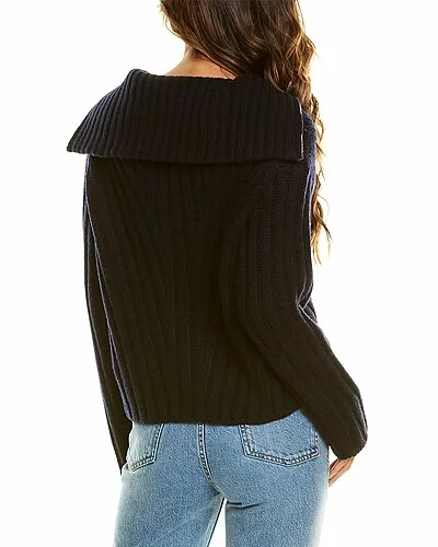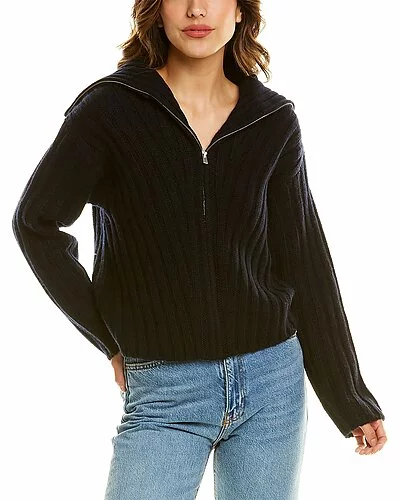 - Rib Transfer Zip-Up Cashmere & Wool-Blend Sweater in coastal blue with chunky knit and spread collar