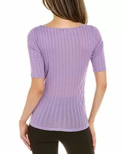 - Wide Rib Scoop Neck Top in coastal with ribbed design and scoop neck